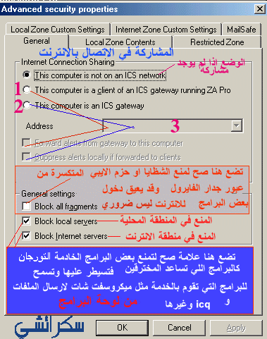 خاص بالمشاركة في الانترنت 1-الاختيار الاول تنشط المدخلics فاي انذار يعرض على