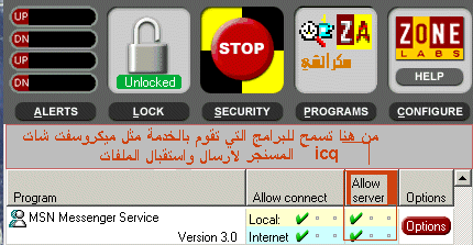 تستعمل stop لقفل جميع البرامج على الشبكه لو احسست بتطبيق خاطىءاو سمحت لبرنامج بطريق الخطأ
