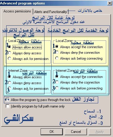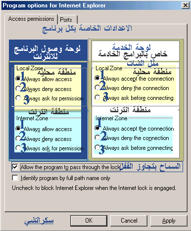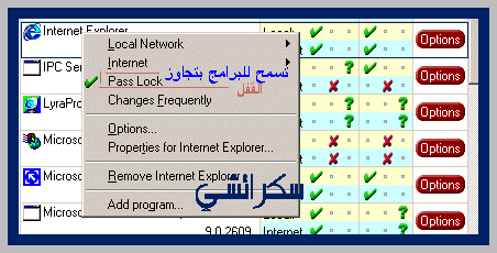 عند اختيار القفل تذهب الى لوحة البرامج وتسمح للبرنامج الذي تريده ان يتجاوز