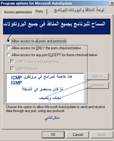 2- منع البرامج من دخول الانترنت او الخدمة بان