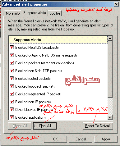 2- والاختيار الثاني قمع الانذارات عن الحاسبات الاخرى فتصبح مخفية فتمنع