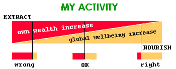 Once people are struck by the bolt of greed their human values are destroyed. The funny thing is: most people just work to make money, only a few care about the well-being of the whole planet. That's how the invisible hand guides us! The guiding message is clear: DON'T CARE ABOUT OTHERS - YOU HAVE TO COMPETE! |