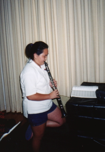 Caryn has some downtime relaxing with that lovely instrument, the clarinet.