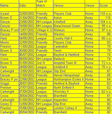 2002 Averages Batting 02 Bowling 02 Top Batting 02 2003 Averages 2004 Averages Batting 02 Top of page↑ Bowling 02 Top of page↑ 25 Best Batting Performances 02 Top of page↑