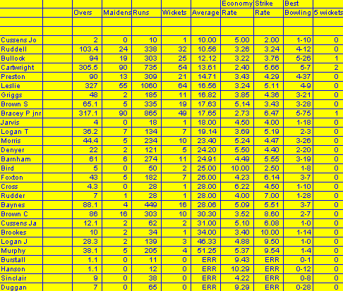 2003 Averages 2004 Averages Batting 02 Top of page↑ Bowling 02 Top of page↑ 25 Best Batting Performances 02 Top of page↑