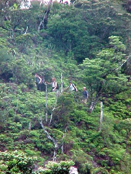 Lost track of time, but after what seems like 2 1/2 hours or so the "contour" ends. The trail begins to climb but the slowly and its still an "easy" walk. Off in the distance I can see the trail and a few hikers. I zoom in but can't tell who it is.