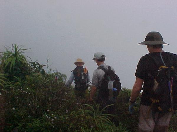I didn't write the time down, but I believe we began our summit crossing at about 11:25. This would be my first summit crossing and I was sort of relieved that I could not see the 1000' plus drop on my right. Of course I also missed my chance to take pictures of the Windward coast.