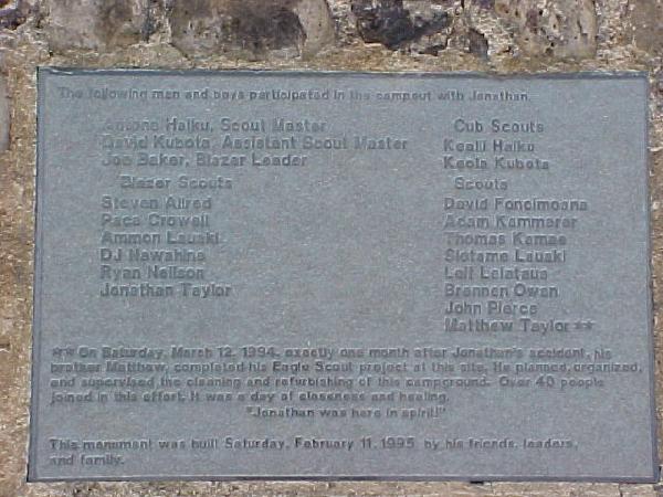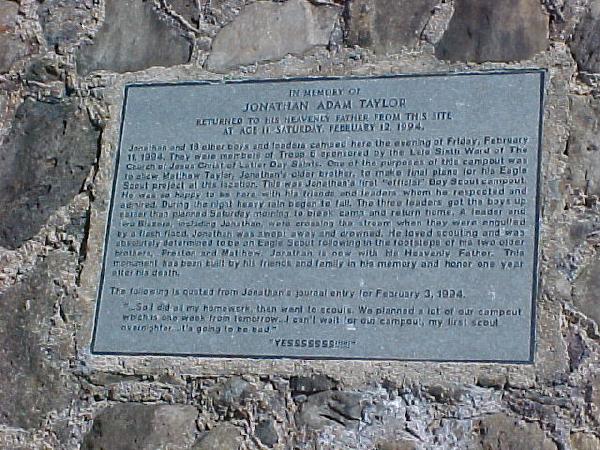 The road ends at a memorial to Jonathan Adam Taylor, a boy scout who died in a flash flood. Hopefully you can read the story in the picture.