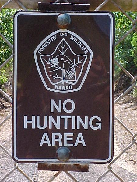 Although the back of the valley is now state property, to control the water supply to both windward and leeward sides of the Koolaus, access is controled and permission is needed to pass the signed gate. We DID have permission which was sought and obtained by Steve Brown the hike leader. The three signs seen on the last page and below were on the right fork gate. On the left fork gate was a sign that said "for your safety do not enter".