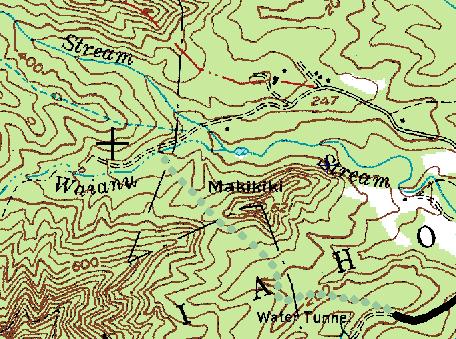 The trail begins on the right after about a 15 minute walk. I can't mark it exactly on the map because as I said my GPS is out of order. As a mater of fact I can't place a lot of what Bill called a "dog leg" on the map. The dog leg is marked in green and is kind of guess work.