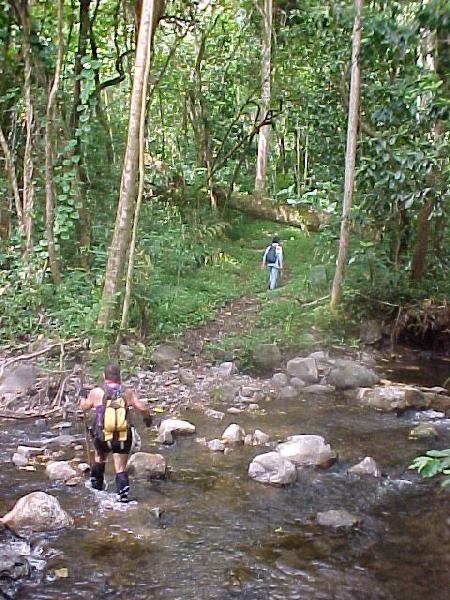 We walked up the road for oh I don't know how long maybe 10 minutes till the stream we crossed earlier cut back and crossed the road. As a mater of fact it washed out the road and we had to rock hop to get across. On the other side the road became a trail.