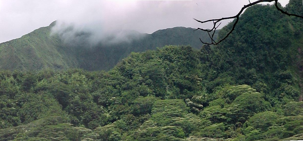 The next picture is the "dark" hole behind Lin and her dog. That tunnel runs straight back into the heart of the Koolaus. The main tunnel runs from right to left in the above picture.