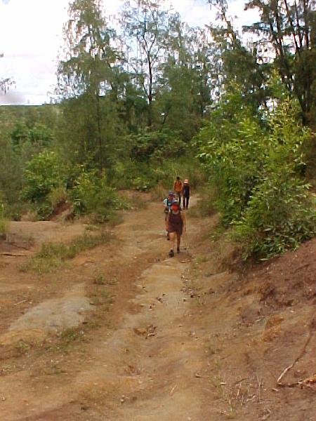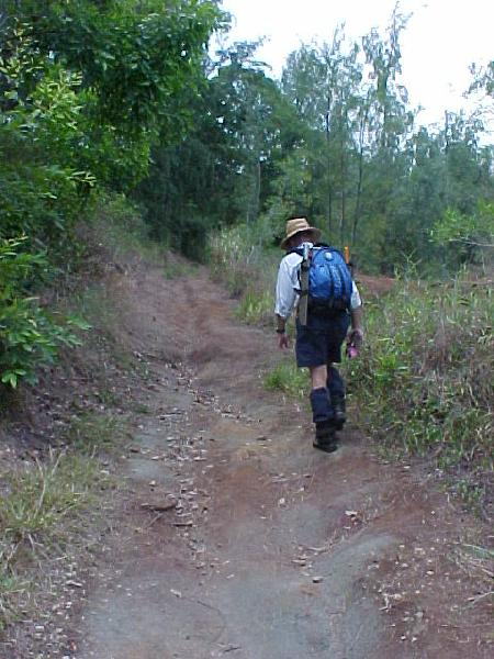 After passing the gate seen on the last page we begin the slow walk up the old "cane" road. Here I'm look up at Jay as he passes me on the fly.