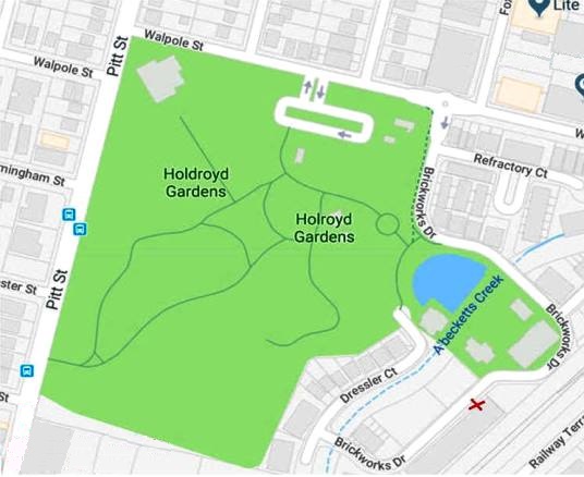 distance to the new Stockland Mall, Holroyd Garden park, a walk
