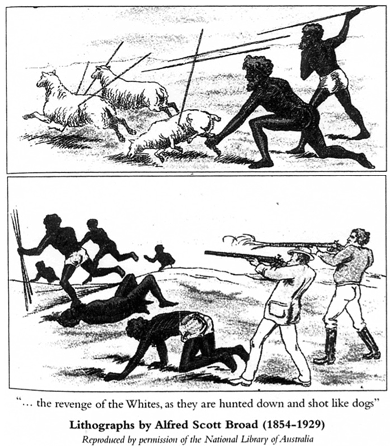 British soldiers, ex-convicts and later settlers, soon came into conflict with the local indigenous aboriginal population. |
