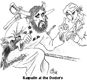 In this Walt Disney cartoon, Rasputin put a curse on the whole Romanov family. Rasputin was also said to have a strange influence over others. People reported feeling compelled to do things while in his presence, something most skeptics attribute to some form of hypnosis. | |||||