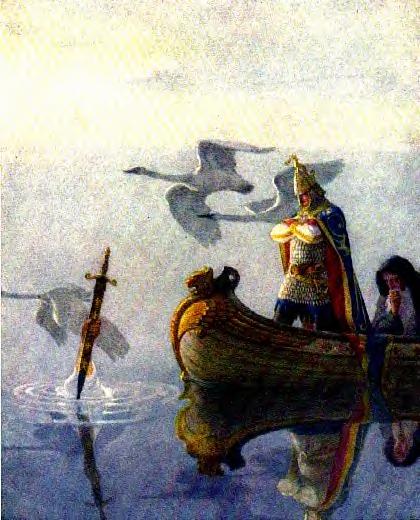 Bedwyr hurled the sword into the misty waters, he saw a mystic hand appear