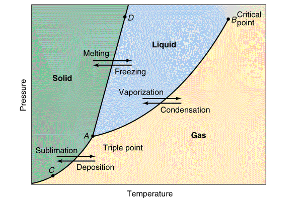 substance turn into equilibrium. This is mentioned as the triple point [POINT A