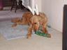 Our dog Indy gets into the season with antlers and a bone