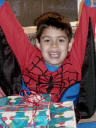 Adam having lots of fun opening presents