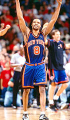 Sprewell overcame both an early season injury and the problem of fitting a player with a frenetic style into an offense used to a deliberate pace and had an outstanding comeback season in New York, becoming a crowd favorite at Madison Square Garden in the process. After starting the first two games of the season at small forward, and scoring 24 points in his Knicks debut against Orlando on February 5, he suffered a stress fracture of his right heel and was sidelined for 13 games. But he came back one month later and played in each of the remaining 35 games, making two more starts at small forward but generally coming in as the Knicks' sixth man to provide instant offense. He averaged 16.4 points, 4.2 rebounds, 2.5 assists and 1.24 steals in 33.3 minutes per game, shooting .415 from the field, .273 from the three-point arc and .812 from the free throw line. He ranked second on the Knicks in scoring and steals, fourth in assists and minutes and tied for fourth in rebounding. He scored 20 or more points 11 times and had two games of 30 or more, getting a season-high 31 against the Clippers on March 16 and 30 against Philadelphia on April 29. He also registered season-highs of seven rebounds at the Lakers on March 28 and eight assists against Charlotte on April 23. He averaged 24.3 ppg in the last eight games of the season, as the Knicks surged from a .500 record to capture the eighth and final playoff berth in the Eastern Conference. He then led the Knicks at 20.4 ppg in the playoffs as they upset top-seeded Miami en route to the Eastern Conference Championship and a berth in the NBA Finals, where they bowed to San Antonio in five games. He played in all 20 playoff contests and started the last eight at small forward while center Patrick Ewing was sidelined by injury, averaging a team-high 26.0 ppg in the Finals against the Spurs.