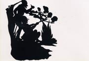 Kara Walker is an American artist whose work explores the horrors of slavery and the old sexual stereotypes of Black women that still are present in our culture today. Her medium is black paper cut into silhouettes, once a popular Victorian art style. Kara Walker was inspired to make work of this content when she read the story Gone with the Wind by Margaret Mitchell in graduate school. In the story there are happy ignorant slaves that defended their white masters. There was even a part of the novel where the heroine Scarlet OHara goes to the slaves quarters and is overcome by a niggery scent and vomits. The racism in the book is poorly covered by the romanticism. Kara Walker thought about how it would be the want to be the heroine and kill her at the same time.