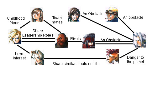 This story is filled with a variety of emotions. You will experience joy, pain, fulfillment, and the most valued emotion love. The story is set by introducing a young man by the name of Cloud Strife who has left his past as a Shinra soldier to be a mercenary for hire. He does not care about anything accept the money he will receive for completing the job. But as the story progresses and he realizes that he can not be the selfish person he once was as he is growing feelings towards female charatcer Aeris. Cloud crosses paths with numerous characters amongst his journey through the world. Each of these characters play an impact on shaping who cloud finally becomes at the end of the story. At midpoint in the game Cloud's love interest is taken from him by Arch-nemesis Sephiroth, who is a man on a journey to become one with the ancients. This was the peek, the climax, of the story which would eventually lead to the final battle between Cloud and Sephiroth. The story is so emersive there is no way I could fill all the details into this project. While playing the actual game I easily recorded over 400 hours into this story. It is that immersive and and gripping. The story structure can be seen to have a beginning, climax, and a resolution but, throughout the story this sequence of events occurs many times. It can easily be said that Final Fantasy 7 was one of the greatest stories of all times. To this day not a single story released has even come close to what was acheieved in Final Fantasy 7.