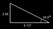 So if 2.59 fiducials corresponds to 26.8° (half the horizontal or vertical FOV), then we have another right triangle we can use to measure any angle in the photo whose distance is represented in the fiducial coordinate system.