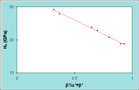 Figure 6. The linear dependence of hardness of the b-sialon content of a sialon artifact.