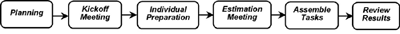 Most software professionals must provide estimates for their work, but few of us are skillful estimators. Many of us havent been trained in estimation techniques. Were too optimistic, with short memories that mask the painful overruns from previous projects. We dont incorporate contingency buffers to accommodate unexpected events or risks that materialize. And we often overlook necessary aspects of an activity, so that when we eventually confront those tasks, we either perform themthereby exceeding our estimatesor skip them, perhaps compromising quality in the process. There are several ways to become a better estimator. The most basic approach is to record effort, duration or size estimates as well as your estimating processes and assumptions, and then record the actual results from each estimated activity. Comparing actual outcomes to the estimates helps generate more accurate estimates in the future. Estimating procedures and templates that itemize tasks help avoid the common problem of overlooking necessary work. Another approach builds on the principle that multiple heads are better than one. Developed at the Rand Corporation in 1948, the Delphi estimation method asks a small team of experts to anonymously generate individual estimates from a problem description and reach consensus on a final set of estimates through iteration. In the early 1970s, Barry Boehm and his Rand colleagues modified this method into Wideband Delphi, which included more estimation team interaction; see Boehms Software Engineering Economics (Prentice Hall, 1981). Mary Sakry and Neil Potter of The Process Group, a Dallas, Texas-based consulting company, later created a repeatable procedure for performing Wideband Delphi estimation on software projects. Using the Wideband Delphi method provides several advantages over obtaining an estimate from a single individual. First, it helps build a complete task list or work breakdown structure for major activities, because each participant will think of tasks. The consensus approach helps eliminate bias in estimates produced by self-proclaimed experts, inexperienced estimators or influential individuals who have hidden agendas or divergent objectives. People are generally more committed to estimates they help produce than to those generated by others. No participant in an estimation activity knows the "right" answer, and creating multiple estimates acknowledges this uncertainty. Finally, users of the Delphi approach recognize the value of iteration on any complex activity. Wideband Delphi Wideband Delphi can be used to estimate virtually anythingthe number of labor months needed to implement a specific subsystem, the lines of code or number of classes in an entire product, or the gallons of paint needed to redecorate Bill Gates house. I used Wideband Delphi once with a process improvement group to estimate the effort it would take a particular organization to achieve level two of the Capability Maturity Model. The Delphi method helps you develop a detailed work breakdown structure, which provides the foundation for bottom-up effort and schedule or size estimation. The starting point for a Delphi session could be a specification of the problem being estimated or an initial high-level task list or project schedule. The outputs are a detailed project task list; a list of associated quality, process-related and overhead tasks; estimation assumptions; and a set of task and overall project estimates, one from each participant. Figure 1 illustrates the process flow for a Wideband Delphi session. The problem being estimated is defined and the participants selected during planning. The kickoff meeting gets all estimators focused on the problem. Each participant then individually prepares his or her initial task lists and estimates. They bring these items to the estimation meeting, during which several estimating cycles lead to a more comprehensive task list and a revised set of estimates. The moderator or project manager then consolidates the assorted estimation information offline, and the team reviews the estimation results. When some predetermined exit criteria are satisfied, the session is completed. The resulting range of estimates is likely to be a more realistic predictor of the future than any single estimate. Lets look at each of these process steps in turn.