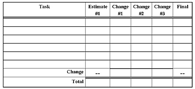 Individual Preparation Lets assume that you wish to estimate the total amount of work effort (typically expressed in labor hours) needed to complete a certain project. The estimation process begins with each participant independently developing an initial list of the tasks that will have to be completed to reach the stated project goal, using a form like that shown in Figure 2. Each participant then estimates the effort each task will consume. Break each activity down into tasks that are small enough to estimate accurately. I dont feel comfortable estimating individual tasks larger than about 20 labor hours. State the tasks clearly, because someone will have to merge all of the participant task lists into a single composite list. Total the estimates you produce for each project task, in the agreed-upon units, to generate your initial overall estimate.
