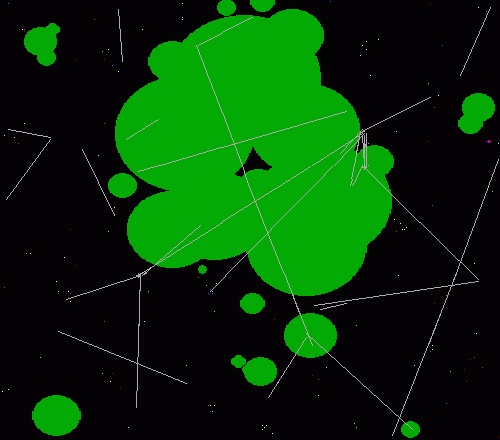 Composite images of screenshots from SF2 (a little editing was done to make the fluxes straight and the anamoly prettier). The Starflight Fan Page has some much more readable starmaps for both SF I and II. Click images to enlarge.