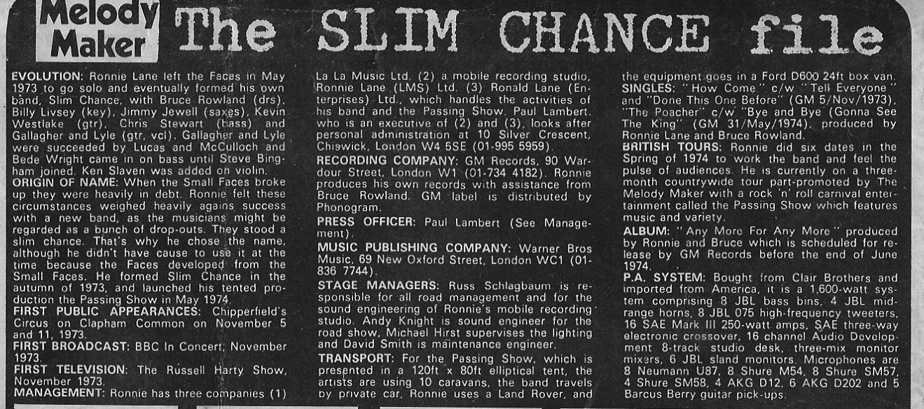 during the various stages of Slim Chance and so on.