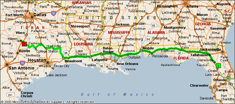 | 12:30 PM | 497.2 | At I-10 Exit 267A-B, turn off onto Ramp for 0.5 mi |