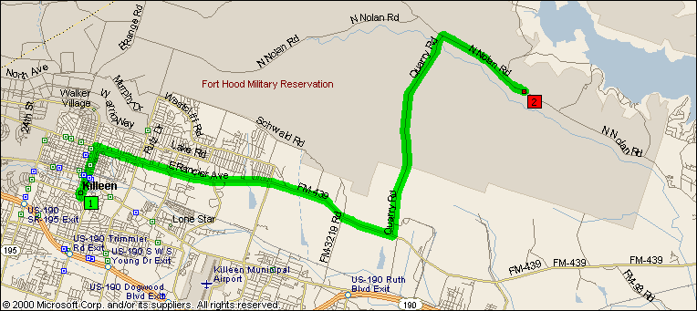 | 5:00 AM | 0.0 | 1 Depart Killeen on Bishop Dr (South) for 76 yds |