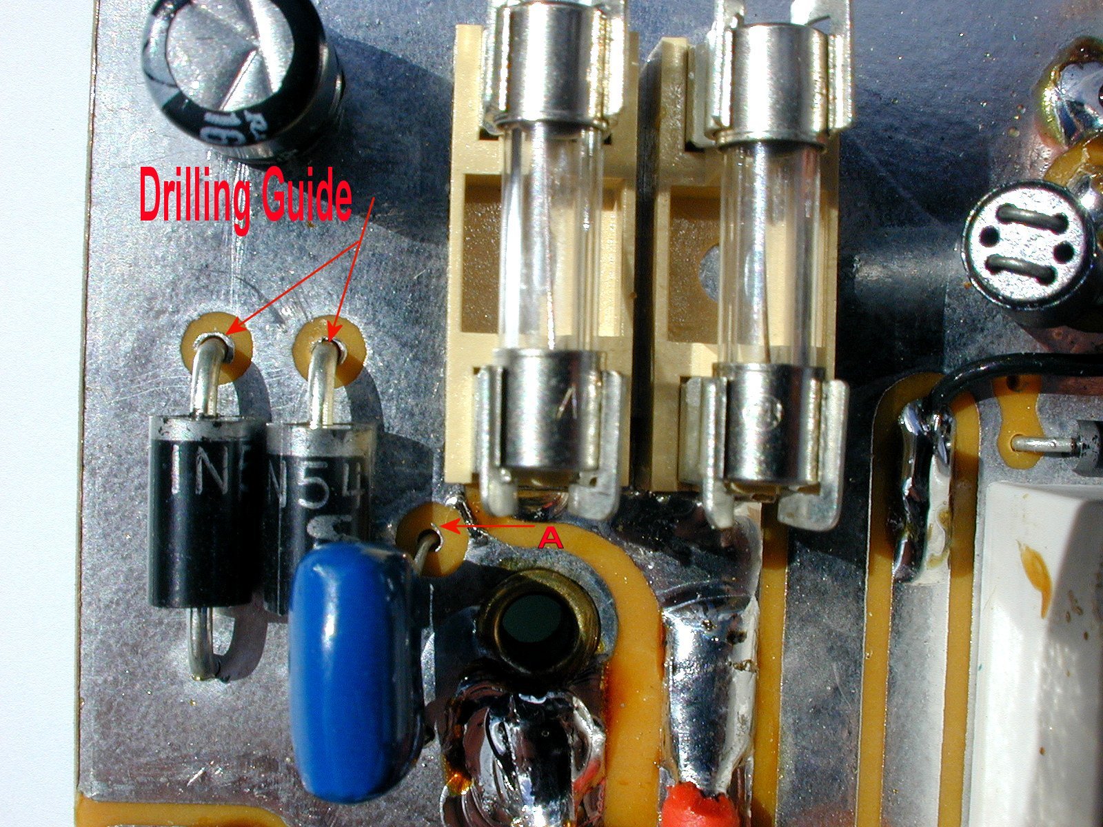 solder trace around the diode leads before they go through the