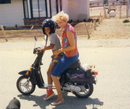 Bronson giving his Gramma Marlene a ride on his moped: