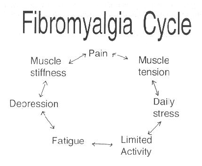 When we are in pain, our muscles tighten up, causing muscle tensions. This can be caused by job or family stress. Stress can lead to fatigue which can lead to limited activities, whether work, hobbies, social, or family. This leads to depression and more muscle stiffness and pain... and the cycle continues.
