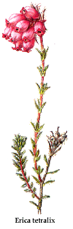 Itinerario 1.- El monte llamado DA COSTA constituye el itinerario 1 del mapa y es el área más adecuada para encontrar los mejores ejemplares del género ERICA, vulgarmente conocidos por uces o brezos: Calluna Vulgaris, Daboecia cantábrica, Erica tetralix y Erica cinerea y Erica arborea. Los ejemplares de este género alternan en dicho lugar con uno de los ejemplares de plantas más comunes en Galicia, el Ulex europeus.