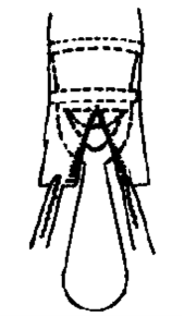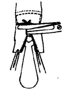 STEP 1: The preputial opening is stretched, if it proves to be too tight to allow the Plastibell to be inserted into the foreskin a dorsal slit has to be made. |