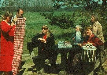 This picture was taken when my family on my mothers side visited Skåne, the soutern part of Sweden, one year in May. Mother is wearing red on the left, the others are me and my grandparents. There is also my uncle Christer and aunt Birgitta.