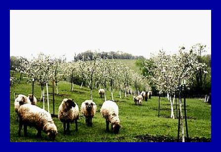 The sheep grazing on new spring grass