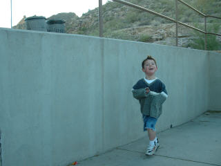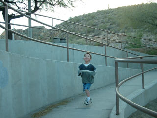 One day in Phoenix, we drove on the Apache Trail and stopped at a lake for a while. Leif spent most of the time running by the water, then running on the ramp being chased by his Aunt Shawna. He ran for about two hours, pretty much without stopping.