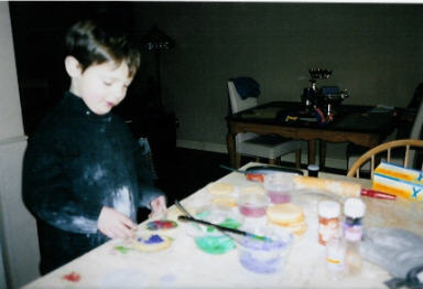 Leif, making cookies at Grandma and Papa's house to take to the fire fighters.