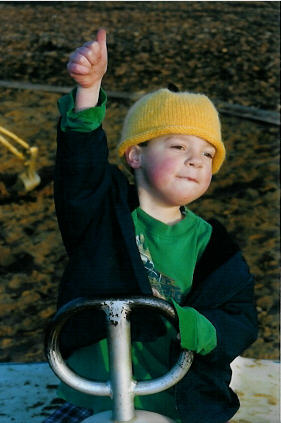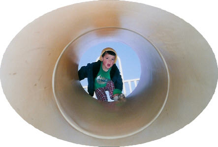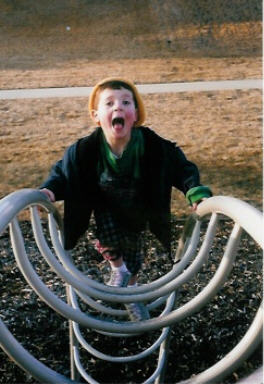 Playing at the "spaceship park" in Coralville, the first warm day of the spring.