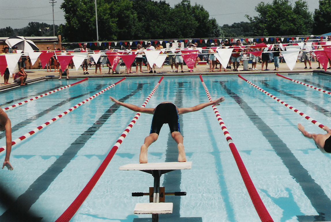 My brother taking off at a swim meet