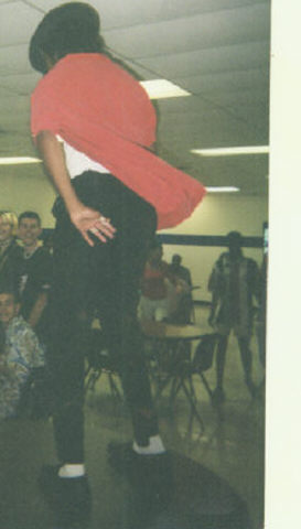This iz' just me in tha' cafeteria of Eastern Hills High School. I'm on tha' lunch table dressed and dancin' like tha' King of Pop himself!! This happened tha' last week of my senior year.