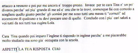 You have anything left to say rituccia? Are you still waiting for the servant that you are going to give, the broom, the dishes, what else? It is about time that you come and collect the DOUBLE SHEETS YOU placed in drawer and bring back my sheets, and stop tearing my pants and underpants. I never had DOUBLE SHEETS in my life, neither did my mother, for her husband died quite a long time ago and she was sleeping in a single bed.