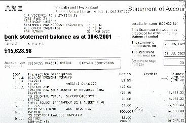 it says balance as at 30/6/01 $15,628.98 No unpresented cheques, no unpresented deposits. So the balance had to be precisely the same.