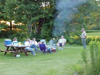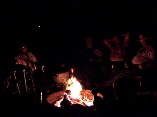 Our night time fire.I am on the left. Brother Scott, Uncle Vernon and friend John. Hard to see us huh? Hey!! It is dark. LOL |